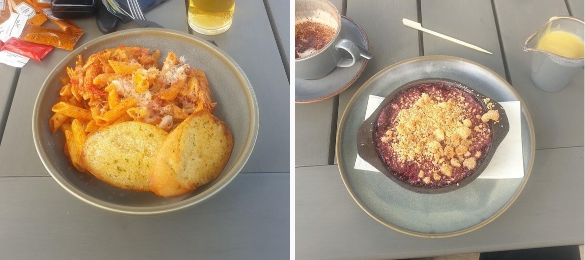 We went for breakfast. Sat outside facing the green. The staff couldn't have been nicer or more helpful. Food was cooked freshly and really well. I couldn't fault our visit.